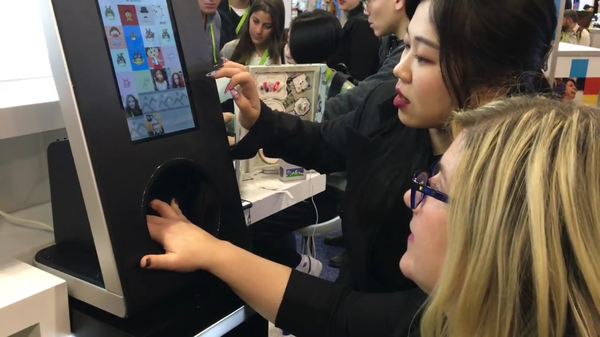 一位參觀2018CES展的女性觀眾嘗試了這項(xiàng)新的美甲技術(shù)。