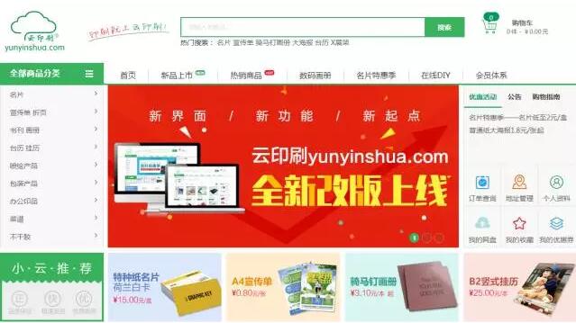 元旦來臨之際,云印刷網(wǎng)(www.166oa.com)經(jīng)過三個多月緊鑼密鼓地設(shè)計、修改、測試,終于趕在2016年的尾巴完成了華麗轉(zhuǎn)身,成功改版上線,以嶄新的面貌面向大家,站在新的起點為用戶帶來更卓越的購物體驗。