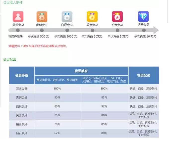 此外,針對會員體系調(diào)整,在普通會員的基礎(chǔ)上,新增了青銅、白銀、黃金、鉑金、鉆石五個會員等級,每個等級均有對應(yīng)的優(yōu)惠折算方式,級別越高,享受的優(yōu)惠折扣越大。