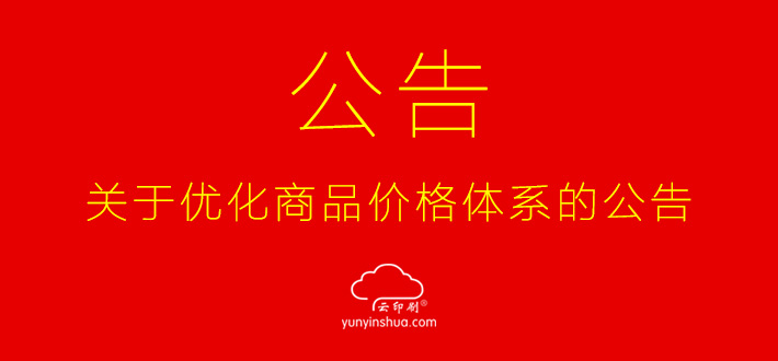? ? ? ?新的一年,新的氣象,為了給用戶提供更好的服務(wù)和體驗,我們對云印刷網(wǎng)價格體系在合理范圍內(nèi)進行了一次整體優(yōu)化,優(yōu)化后的商品價格將更加符合市場規(guī)律,同時整體上更加優(yōu)惠,從而為客戶提供更具競爭力的商品,讓合作伙伴擁有更大的利潤空間。